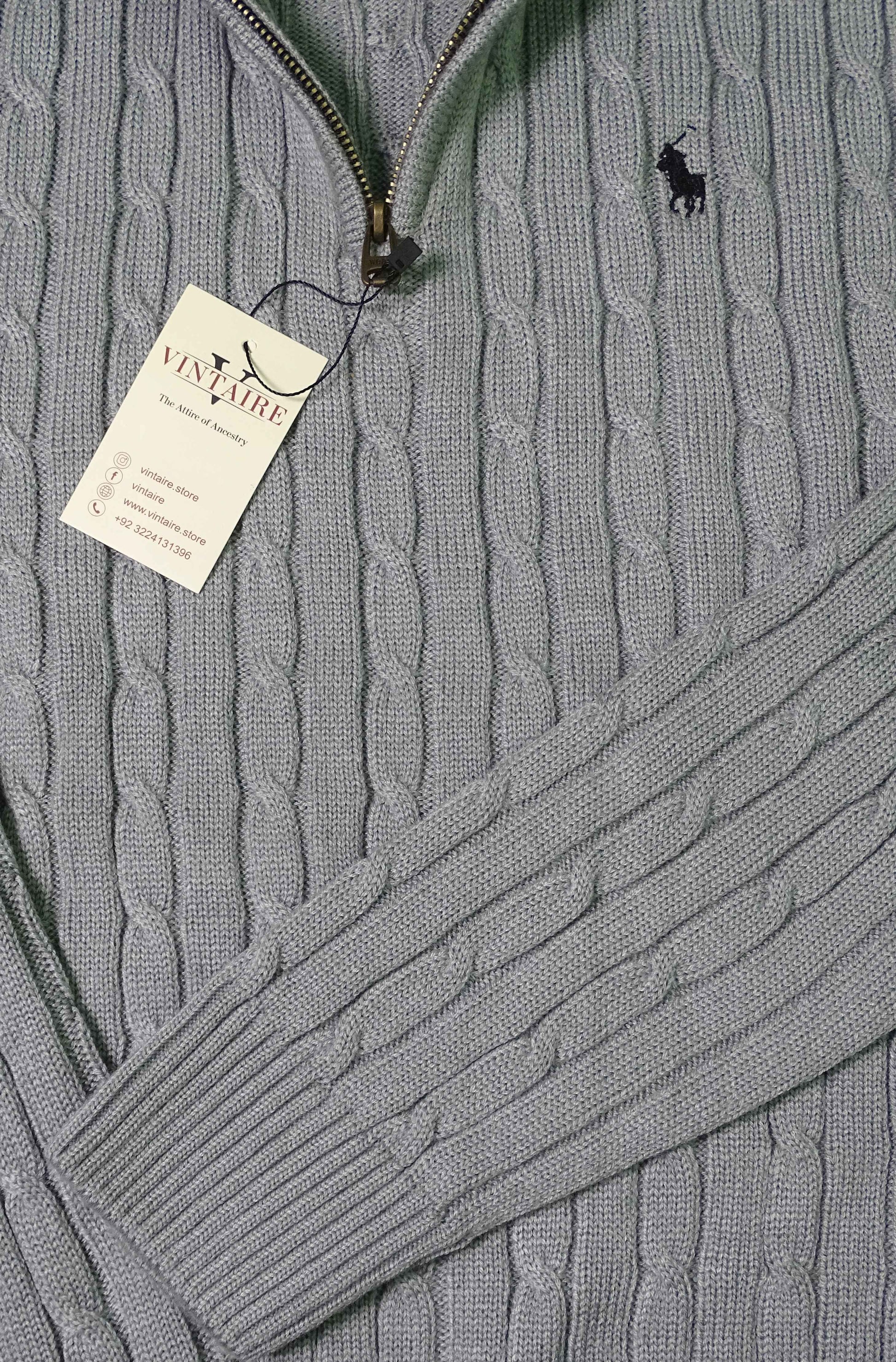 Elevate your winter wardrobe with this grey cable knit quarter zip sweater, crafted for timeless elegance. Designed with a rich cable knit texture and a refined quarter-zip collar, it exudes effortless sophistication and old-money charm. The blend of acrylic and wool ensures warmth, comfort, and lasting durability, making it the perfect piece for both casual refinement and smart layering.